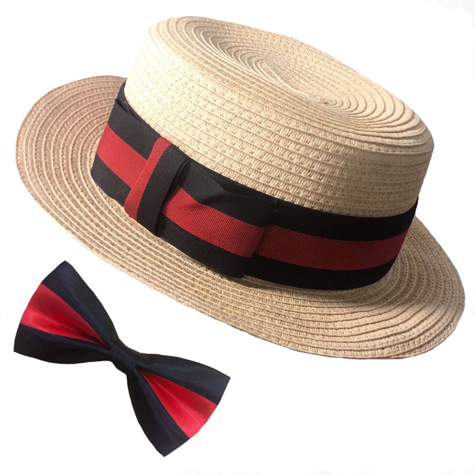 Vintage Boater Hat & Bow Tie Set.