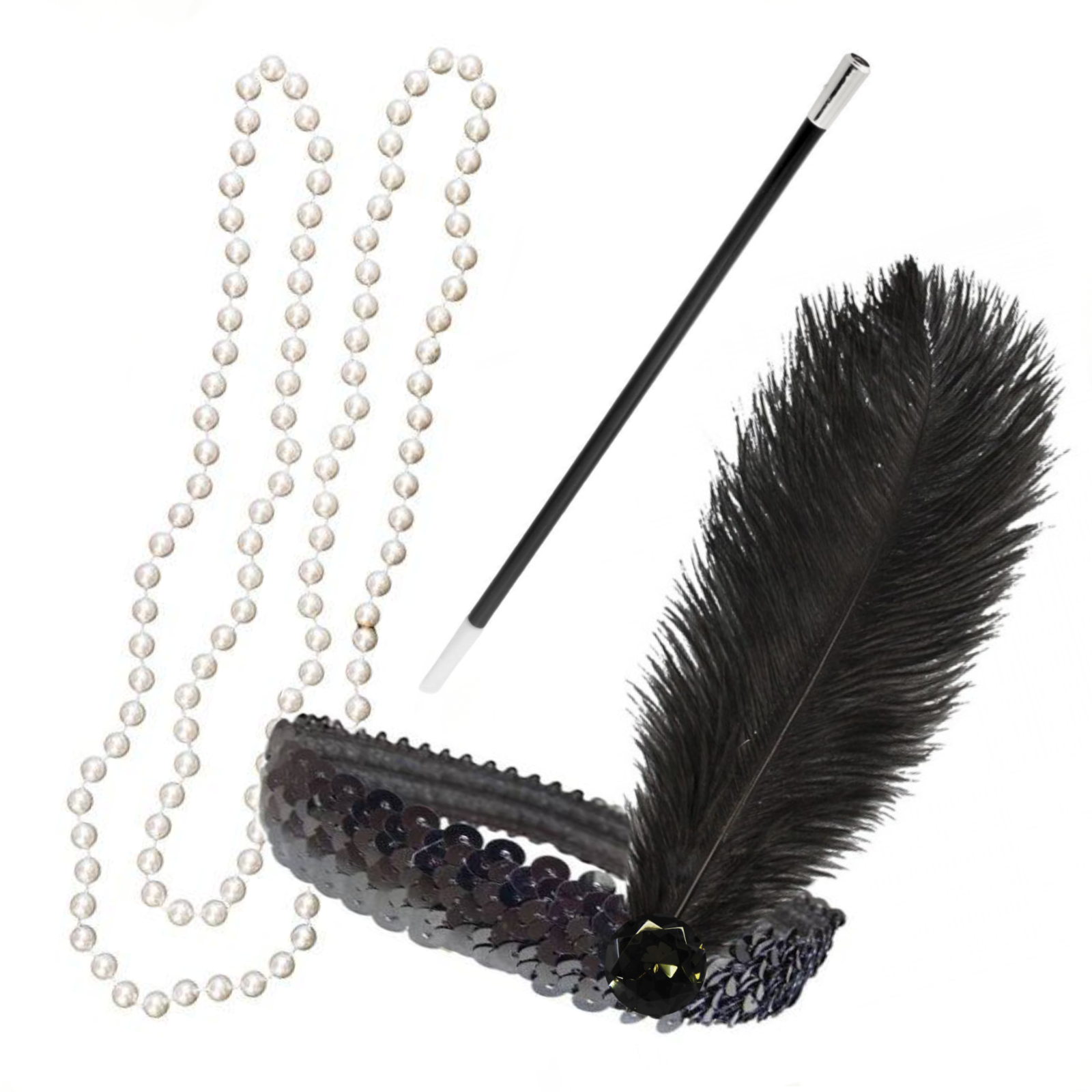 Get the Gatsby look- instantly! Complete with headband, necklace and cigarette holder, this kit is all you need for your 1920’s costume. Includes: Sequin Headband, Pearl Necklace & Beatnick Cigarette Holder Size: Adult One Size Fits Most