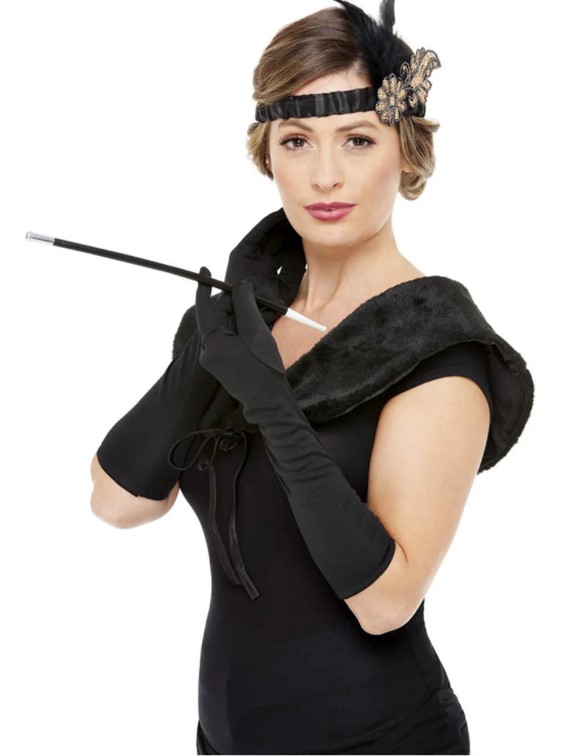 Deluxe 20s Accessories Kit, Black & Gold , Gloves, Cigarette Holder, Headband & Stole